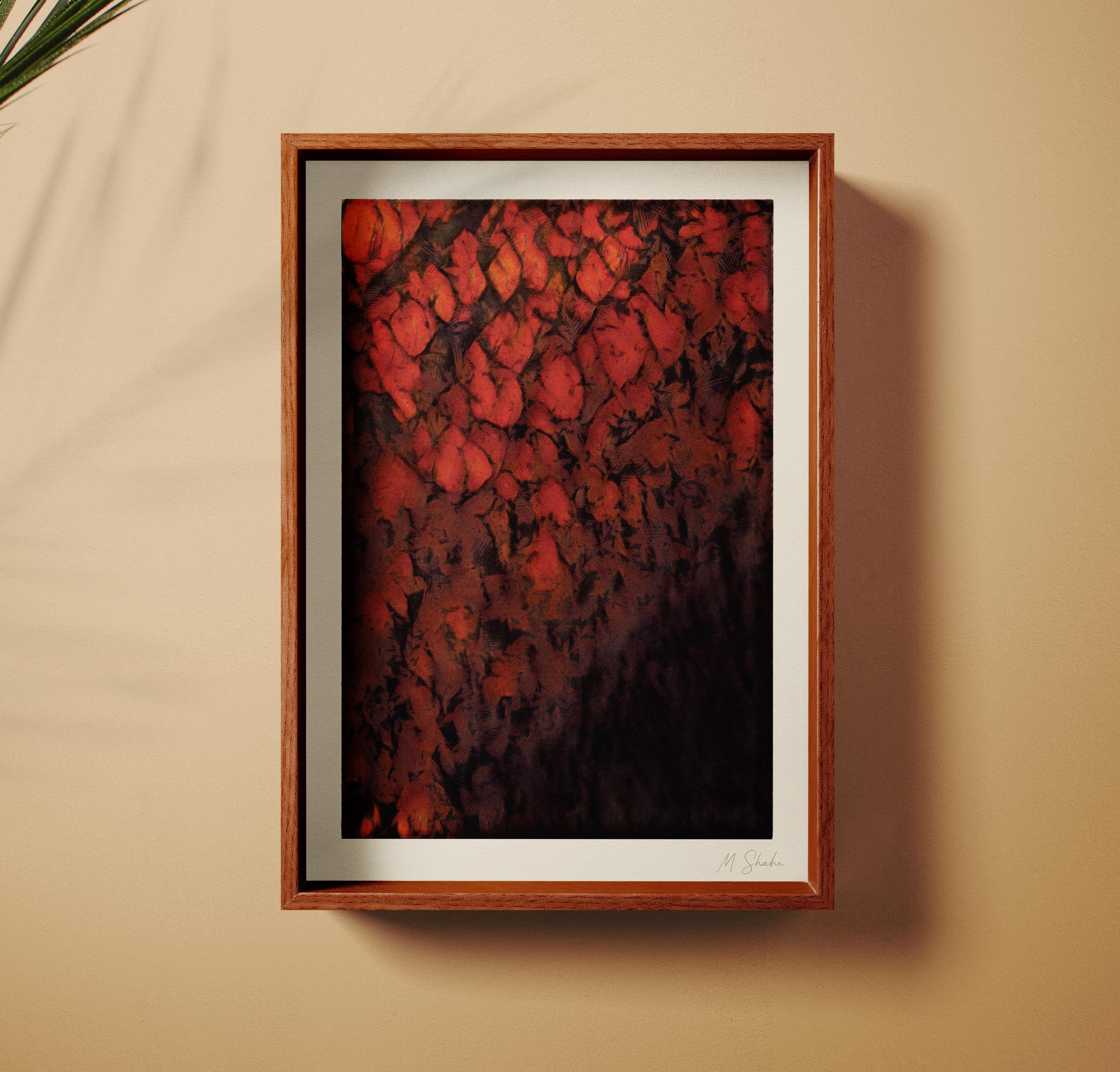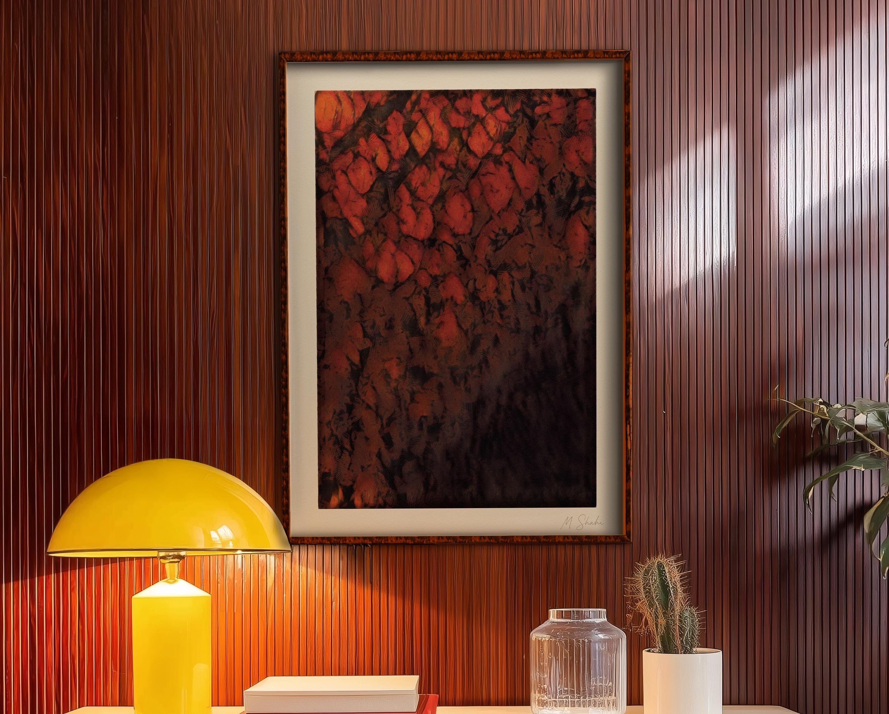 🍂 Immerse yourself in the warm glow of burnt orange ivy cascading like embers at dusk. This moody botanical art piece captures a modern plant study with abstract wall art that invites quiet reflection. Perfect for lovers of mid century modern style, it brings a cozy yet sophisticated touch to any space.