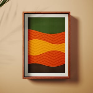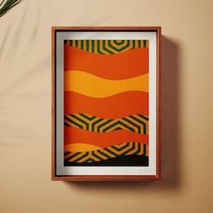 Mid-Century Modern Abstract Wall Art: Ochre Geometric Design, Giclée Print on Hahnemühle